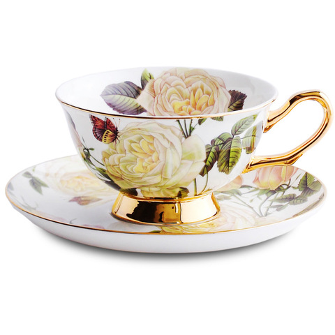 Hochwertige neue europäische umwelt freundliche Blumen Gold dekoration feines Bone China Luxushotel Kaffeetasse Set